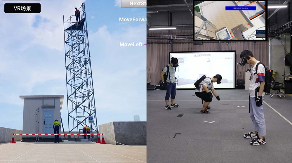 瑞立視為其定制開發(fā)基于大空間VR多人交互技術(shù)的“多人協(xié)同VR模擬基站安裝培訓(xùn)系統(tǒng)”,將5G基站安裝全流程工作在VR場景中進(jìn)行虛擬仿真培訓(xùn)。