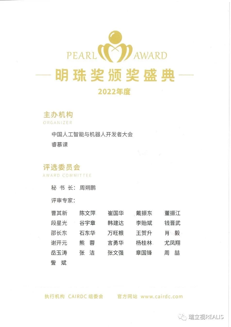 瑞立視榮獲 2022中國(guó)人工智能與機(jī)器人開(kāi)發(fā)者大會(huì)“明珠獎(jiǎng)”